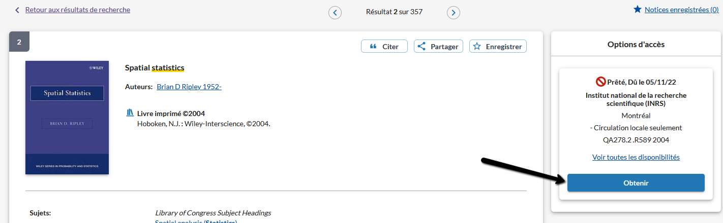 Les prêts se renouvellent automatiquement après 30 jours jusqu’à ce que quelqu’un réserve le livre ou jusqu’à la fin de votre affiliation à l’INRS. Par contre, soyez attentif lors de vos absences prolongées car un livre réservé vous sera facturé comme en retard même si vous êtes sur le terrain ou à l’étranger pour 3 mois.